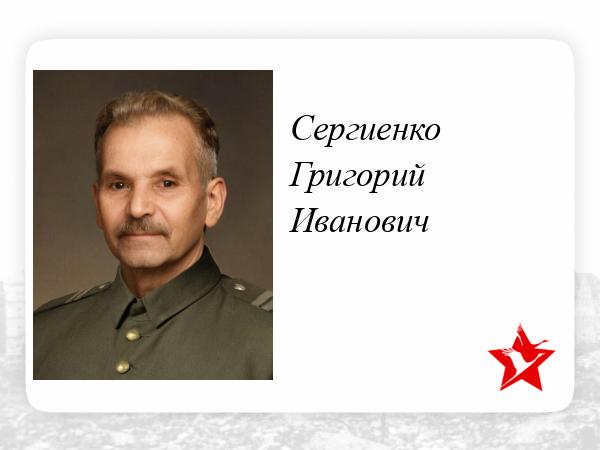 Григорий Иванович с 19 июля 1941 г. работал на должности водителя автомашины зис-5 – к, своей работе относился со всей преданностью и являлся одним из примерных товарищей за время работы в лазарете. Он эвакуировал за три года более 200 больных и раненых лошадей, сохранив в полной боевой готовности свою автомашину. Автомашина ЗиС-5 на которой работает мл. сержант Сергиенко, прошла более 80.000 километров без капитального ремонта и без единой аварии . Он имеет 3 благодарности от Военного Совета Армии. Награжден значком отличный водитель. Пользовался исключительно большим авторитетом среди личного состава части.