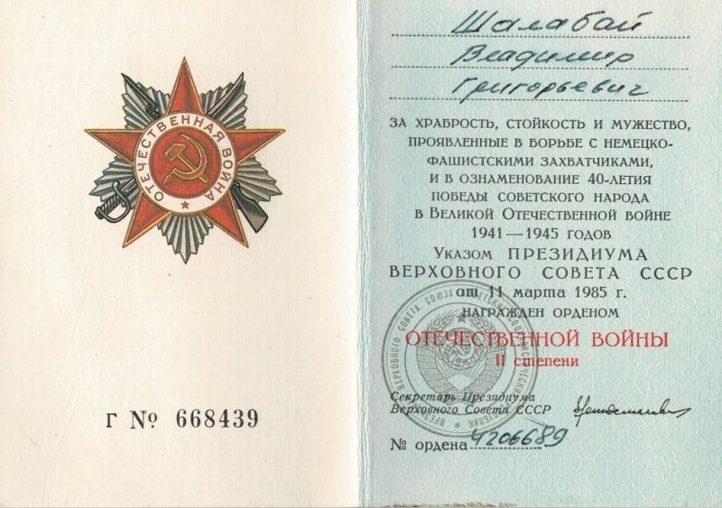 Мой отец участник Великой Отечественной войны с марта 1944 года ( рядовой стрелок) Ушел на фронт когда немцы вошли в Украину, а именно в с. Харлиевку, Житомирской области. Ему тогда еще не было восемнадцати лет. Воевал под Кенисбергом и дошел до Берлина. Был дважды ранен (легко ранен в голову и в ногу, тяжело ранен в лицо). Вернулся домой в июне 1946 года. Был очень скромным человеком, отличным семьнином и отцом троих детей. Всю свою жизнь работал, ничиная с поднятия целины. Ушел из жизни в 60 лет от пулевого ранения со времен войны.