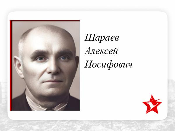 Тов.Шараев несмотря на преклонный возраст является передовиком в работе и служит примером для остальных. Имеет благодарности от командования части и премирован денежной наградой.