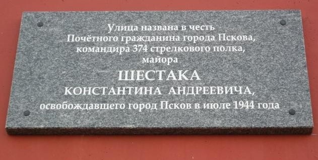 30 июля 1969 года Константину Андреевичу Шестаку присвоено звание "Почетный гражданин города Пскова".