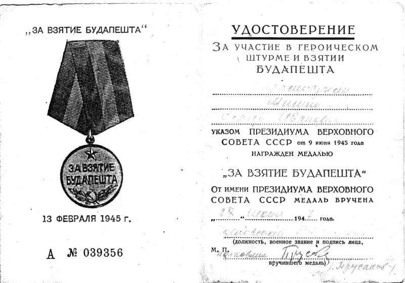 Прошел всю войну в звании Красноармеец Сапёр. Имеет много благодарностей от товарища Сталина, орденов и наград "За оборону Советского Заполярья", "За взятие Будапешта". Всю войну он прошел на передовой, разминировал местность, чтобы проходили танки.