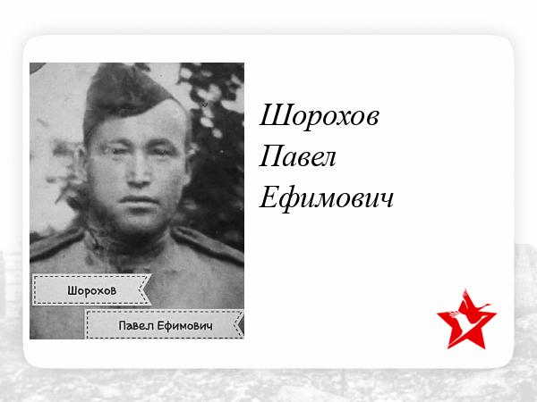 Мой прадед, Шорохов Павел Ефимович, 1908 г.р.,красноармеец, был призван в 1941 г. Буйским РВК Ярославской области ( ныне - Костромская обл.), 1013 СП 285 СД, 05.11.1941 г. попал в плен под Лугой, был ранен, освобожден.