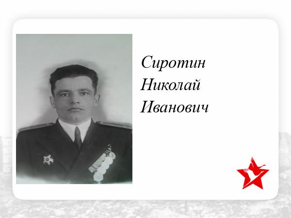 Сиротин Н.И. был капитан-лейтенантом Балтийского флота и прошел всю Войну.