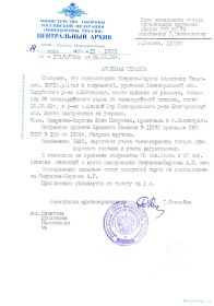 Могила моего Деда находится (из письма его заместителя, посланного к сестре А.И.) в районе деревни Мясной Бор под Новгородом.. В этом месте ОЧЕНЬ много захоронений, но могилу Деда я найти не смог...