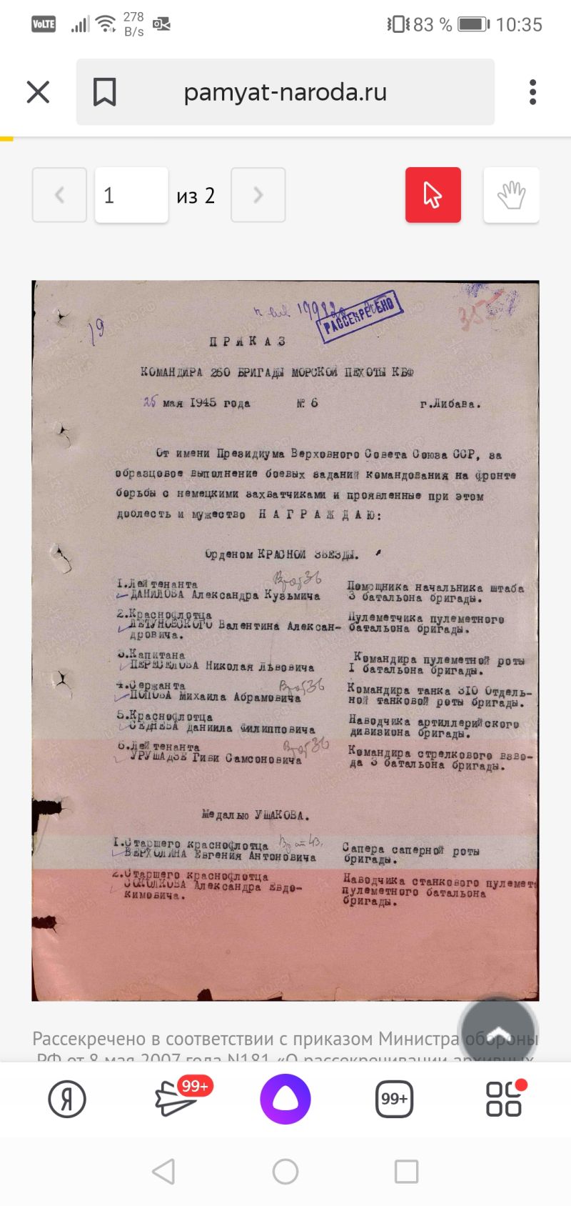 Мой дедушка прошёл всю войну, свой путь он начал с дер. Ключи, Тверской области, откуда был отправлен в г. Либава, где отслужил до окончания войны в звании Старшего краснофлотца и был награждён медалью Ушакова. Я всегда помню о нём, горжусь, люблю и бесконечно благодарна ему и всем ветеранам ВОВ за Великую Победу!!!