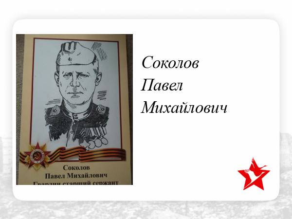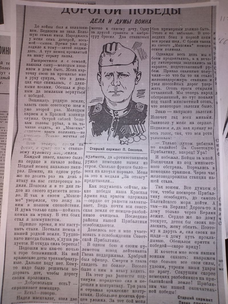 Старший сержант. Командир пулеметного расчета 18 Гв.СП, 9 Гв СД Пропал без вести 25.03.1945 г. найден и похоронен в 2017 в Латвийской ССР, КЭТЭ вол., д. Лэилиэки, берег излучины р. Вартая. Награды: Медаль за отвагу в 1941, Медаль за оборону Ленинграда в 1942, Орденами славы 3 степени. писали про него в газете.