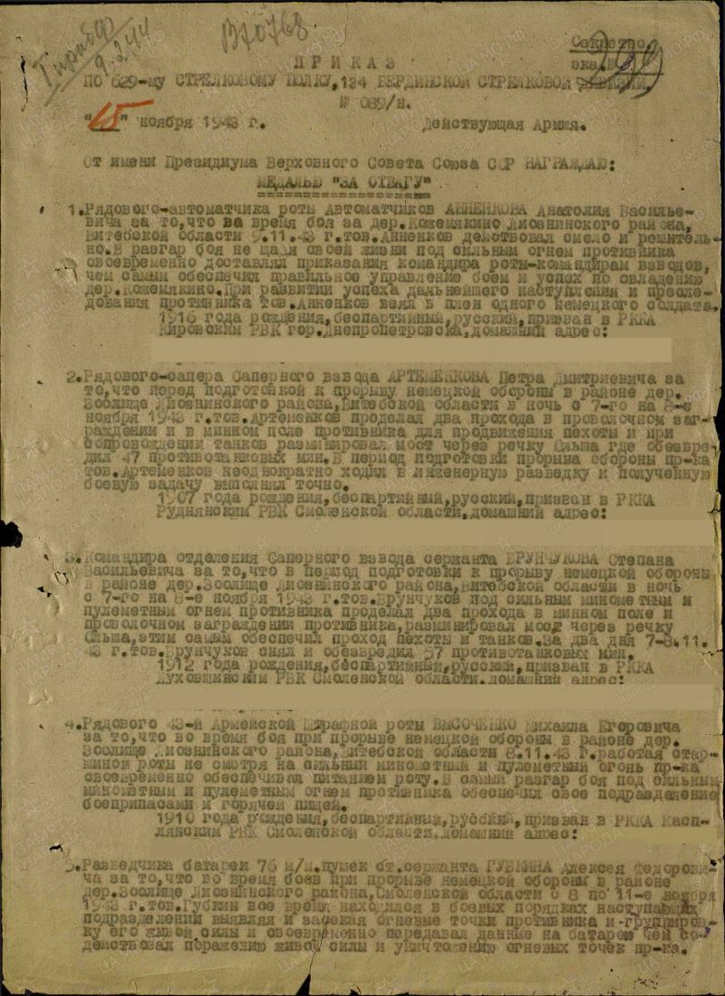 629 сп 134 сд 1 Прибалтийский фронт
