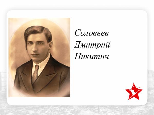 До войны дедушка Митя с женой и 4-мя дочерьми проживал в Ленинграде на ул. Расстанной д.23. Работал вагоновожатым в трамвайном парке, затем комендантом общежития трампарка.На войну был призван 14.12.1941г. Петроградским РВК г.Ленинграда. Служил в хозчасти 153 стр. полка, п/п 418. Писал письма жене и детям с фронта из-под Ленинграда, в феврале 1942 года письма перестали приходить..Пропал без вести. Жена и дети всю блокаду оставались в Ленинграде, от голода две средние дочери (Оля и Нина) умерли, в живых остались старшая Маша 1931г.р. и младшая Валя 1938г.р. Всю жизнь дочери пытались узнать что-то о судьбе отца, долго надеялись на его возвращение... Сейчас их уже нет в живых. Правнука назвали Дмитрием в честь погибшего на фронте прадеда, он стал военным, и 9 января 2000 года тоже погиб на войне в Чечне, закрыв собой девушку-повара...Вечная память героям!!