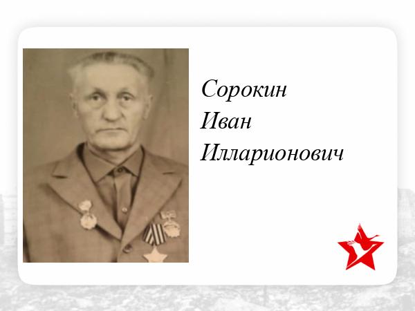 Мой дед Сорокин Иван Илларионович воевал в составе 56 гаубичного артиллерийского полка Ленинградского фронта. За боевые заслуги был награжден Медалью за отвагу и орденом Славы III степени.