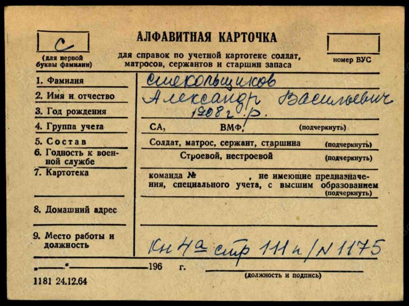 Стекольщиков Александр Васильевич Списки призыва и демобилизации