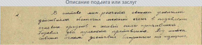 Война с Японией; служил в звании сержанта в должности минометчика 98 Отдельного Пулеметного Батальона; 15 августа 1945 г. получил слепое пулевое проникающее ранение; излечение проходил в ЭГ-2556