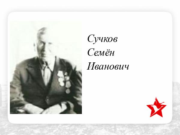 В нашей семье принимал участие в Великой Отечественной войне мой прадедушка Семён Иванович! Место призыва: Бакалинский РВК, Башкирская АССР, Бакалинский р-н. Время поступление на службу в декабре 1941 года, служба в 249 сп 16 Литовская сд 1 ПрибФ. Он был ефрейтором. По рассказам моих родственников дед Семён однажды встретил фашиста на реке где они оба набирали воду, но всё обошлось. Мой прадедушка прошёл ВОВ, но только он пришёл раненный с осколком в голове. Так же он получил медаль за боевые заслуги в 1945 году. Вот что мы нашли в картотеке: первая страница приказа или указа, строка в наградном списке, данные в учетной картотеке.