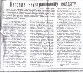 На помощь пришли сибиряки, вместе с которыми остатки батальона гнали врага до самой Западной Вислы. Здесь начались особенно жестокие сражения. Рота попала в окружение, командир Лебедев погиб. В такой тяжелой, дезориентирующей бойцов обстановке, дедушка принял командование и смог не только вывести роту из окружения, но и развернуть врага на запад. Это помогло не только отстоять стратегически важную станцию Кандалакша, но и вдохновить соседние роты, которые тоже вели тяжелые бои.