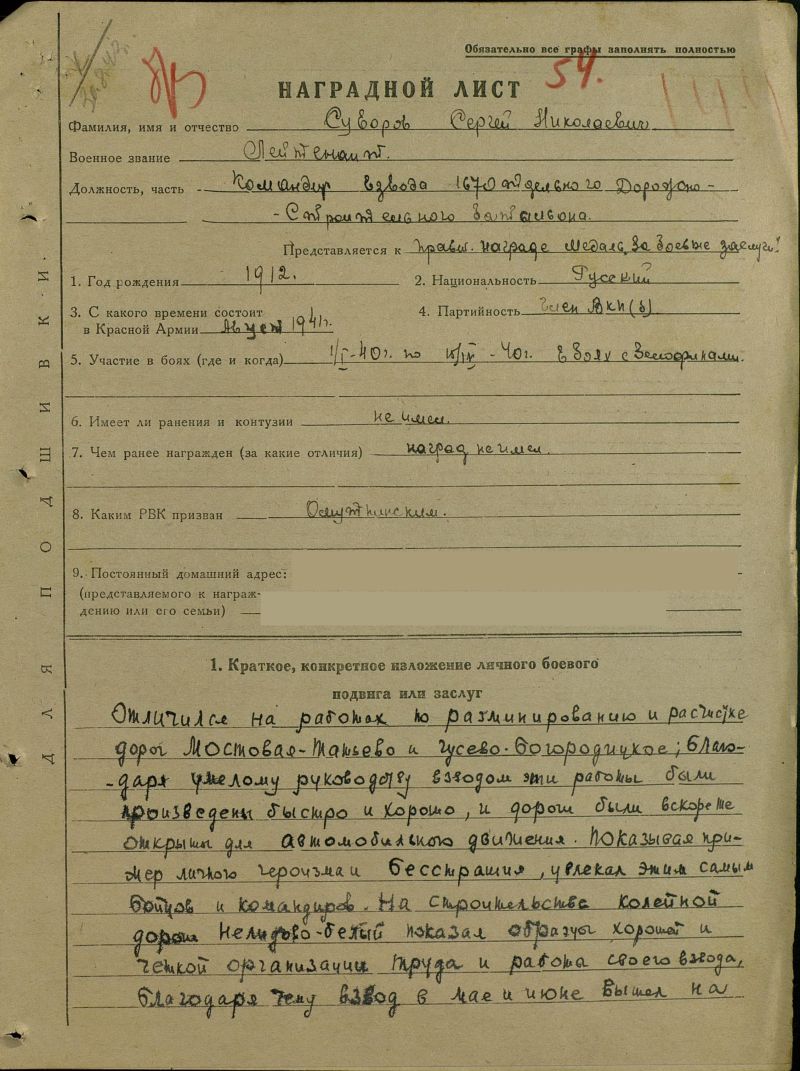 в РККА с 08.1941 года Место призыва: Омутнинский РВК, Кировская обл., Омутнинский р-н