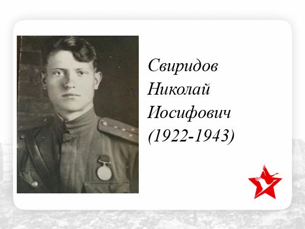 Мать -- Свиридова Пелагея Яковлевна. До войны проживала по адресу: Донбас, ст. Ровенки, ул. Ворошилова, д. 56.