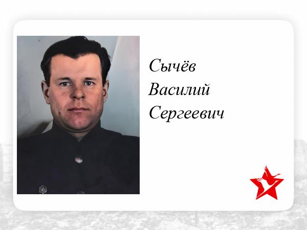Участвуя в боях под Кировоградом 1944 г. тов. Сычев показал себя смелым, мужественным бойцом- Шофером, не однократно возя командира полка, выводил машину из под сильно артиллерийско-минометного огня противника, тем самым спас жизнь своего командира.