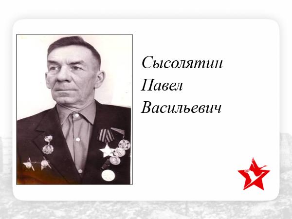 Три танка сменил и Павел Сысолятин. Последний бой на улицах Кракова. Советская Армия спешит спасти город от разрушения. Тяжелейшие бои, за каждым углом подстерегает Фауст-патронщик. И вот замер сысолятинский танк, закрутился на месте – перебило гусеницу. Командир с водителем стали вылезать, и тут вражеский автомат из-за угла дал очередь по смельчакам. Одна пуля попала в горло Сальникова, другая прошла через руку Сысолятина. Выжили оба, но руку Павлу Васильевичу отняли – началось заражение. Потом бесконечные госпитали. День Победы встретил при выписке из одного из них. На груди героя два ордена Красной Звезды, Славы III ст. и медали. Так Родина отметила своего доблестного защитника.