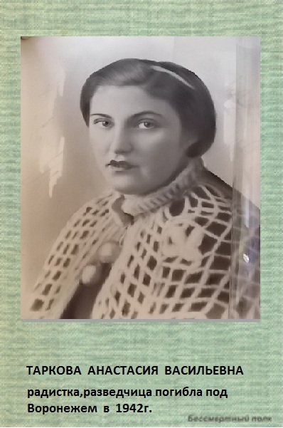Позднее Тася Таркова вместе с москвичкой Ирой Степановой были направленны командованием в тыл врага в районе Воронежа. С 25 июля 1942 года в селах Гремячье, Яблочное, Иванова, Прокудино, Архангельское выслеживали девушки фашистские скопища и передавали по рации данные.