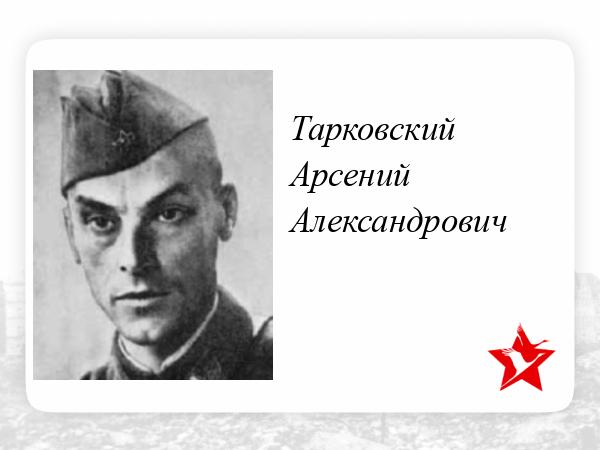 3 января 1942 года Приказом Народного Комиссариата Обороны 0220 А. Тарковский был “… зачислен на должность писаря армейской газеты” и с января 1942 года по декабрь 1943 года работал военным корреспондентом газеты 16-й армии “Боевая тревога”.