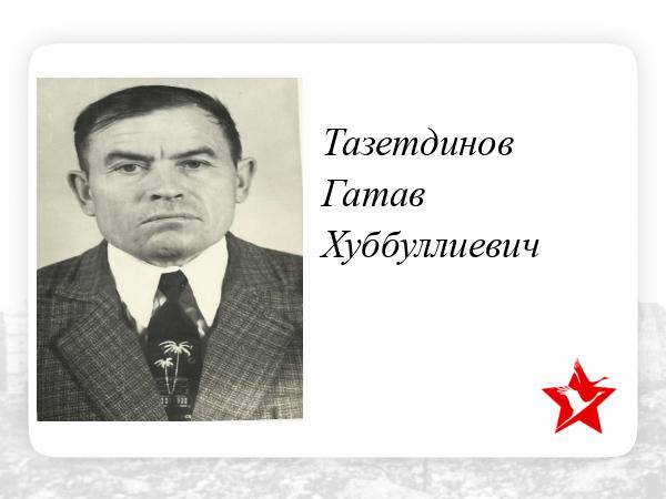 Мой прадедушка Тазетдинов Гатав Хуббуллиевич родился 15 марта 1923 года в с. Карагузино Саракташского района Чкаловской, ныне Оренбургской, области.