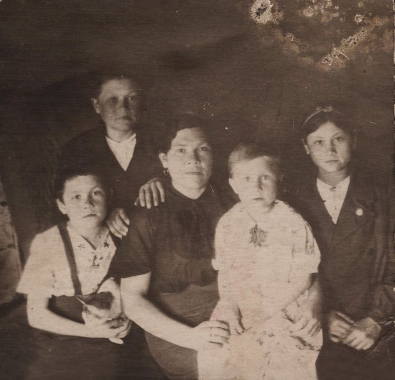 - В 43-м по нашим окрестностям ходила девушка-фотограф. Она была эвакуирована из Ленинграда и временно проживала в деревне Глядково. Благодаря ей у нас есть семейный снимок тех лет. Я на нем в белом цветастом платьице, которое сшила мне 10-летняя сестра Мария. А ситец на него я сама заработала! У всех детей в ту пору были свои обязанности: старшие помогали матери в колхозе, младшие - дома по хозяйству. Моим делом было охранять огород от кур, не подпускать их к грядам. В соседнем с нами доме жила тетя Саня Соколова, мамина подруга. Я не только у себя гоняла птиц, но и у нее. За это она мне подарила отрез ткани. Как я радовалась обновке! А в 44-м у соседки родился сын Николай. В войну в деревнях бывали священники, совершали обряды на дому. Так, в 6 лет я стала крестной у маленького Коли. Помню, как его положили мне на руки, и я осторожно ходила с ним вокруг купели. Александра Григорьевна родила его без мужа. Кто-то в деревне осуждал ее за это, а мама всегда старалась поддержать, жалела.