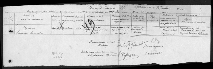 Дата и место призыва 14.09.1943, Суземский РВК, Орловская обл., Суземский р-н