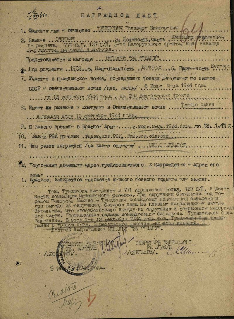 Дедушка был командиром миномётного расчета 771 сп 137 сд 2го Белорусского фронта. Был