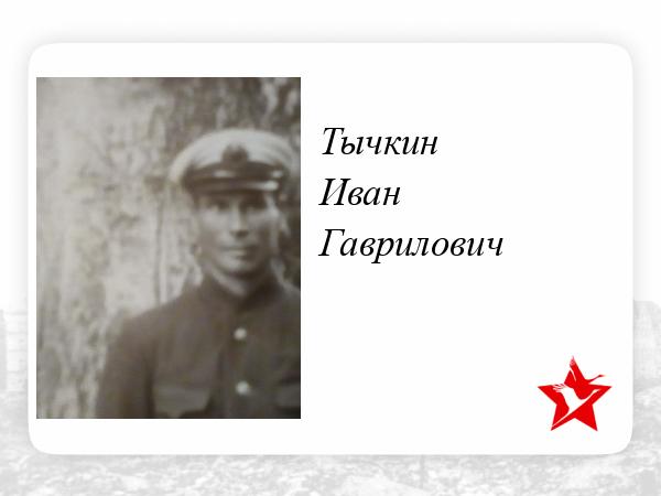 Мой дед, Тычкин Иван Гаврилович, был призван в армию в самые первые дни войны. По воспоминаниям его дочери (моей мамы) он сражался в береговой обороне на Невском пятачке. Он погиб в начале июля 1941 года. Семье об этом сообщили, но не было даже похоронки, по крайней мере, мама, которой тогда исполнилось 15 лет, мне рассказывала так.