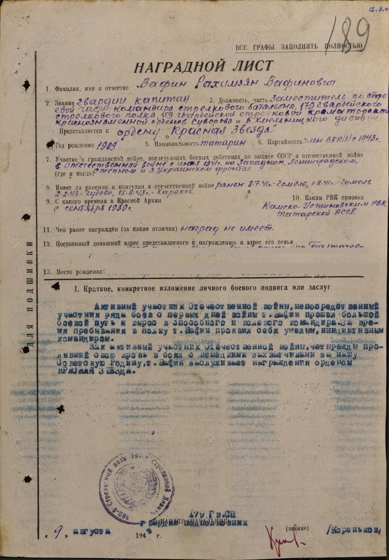 Заместитель по строевой части командира стрелкового батальона , 179 гвардейского стрелкового полка 59 гвардейской стрелковой краматорской краснознаменной орденов Суворова и Б. Хмельницкого дивизии.