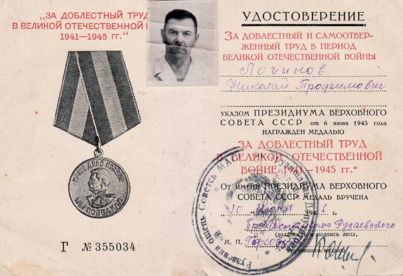 - медаль "ЗА ПОБЕДУ НАД ГЕРМАНИЕЙ В ВЕЛИКОЙ ОТЕЧЕСТВЕННОЙ ВОЙНЕ. 1941-1945гг." ( удостоверение к медали Щ № 201829, 1946 г.).