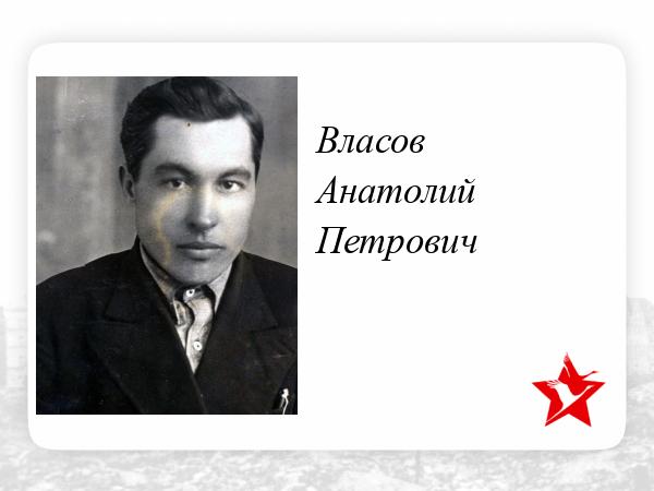 Власов Анатолий Петрович мой родной дядя по отцу.Последнее место службы 22 Гв.СД.Убит 17.08.1942 года. Имя его матери Власова Евдокия Николаевна 1888 г.р. В 1944 году была репрессирована и...