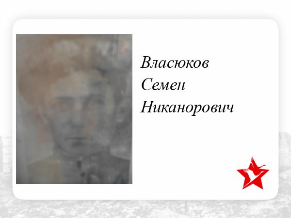 Власюков Семен Никанорович, 1913 года рождения. Уроженец с. Басы Лиманского района Астраханской области. До войны работал в «Сольпром».