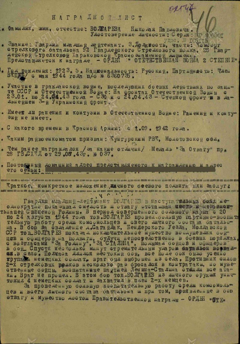 Это мой дедушка (мамин папа). Прошёл всю войну. Женился на моей бабушке Колесниковой Ираиде Андреевне. У них родилось трое сыновей и дочка. Умер в 54 года от ишемеческой болезни сердца в 1977 г. У него была сестра Антонина и брат Юрий (жил в Омске). Его дети: Игорь, Юрий, Владислав и Марина - моя мама.