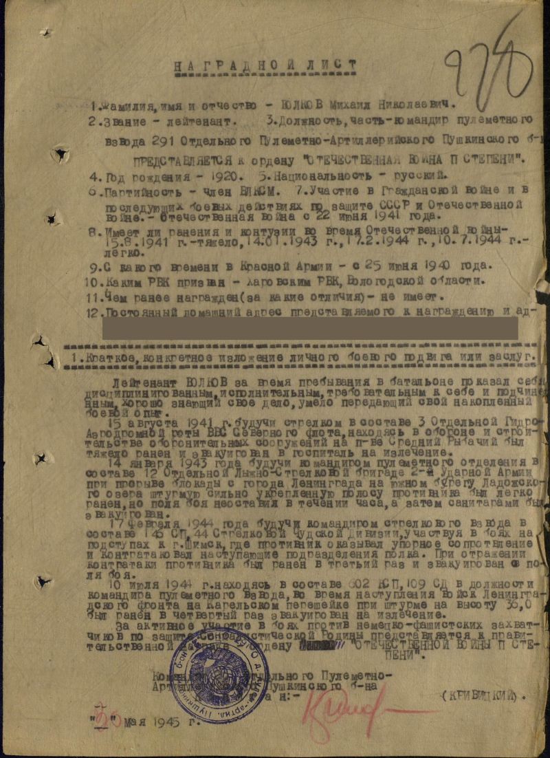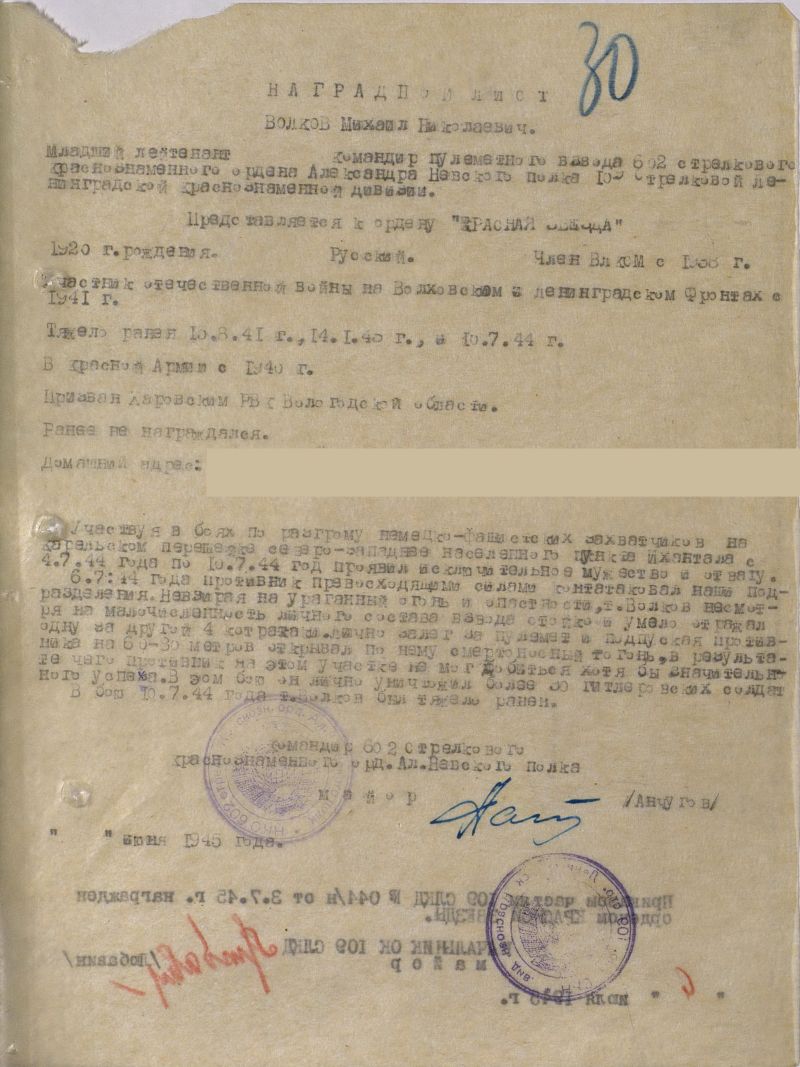 Михаил Николаевич Волков родился в 1926 году в деревне Угольская Шевницкого сельсовета, Харовского р-на Вологодской области. В ряды Советской армии был призван 22 июня 1941 года.