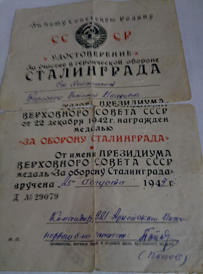 Награжден: медалью «За оборону Сталинграда» и орденом «Красная звезда». Погиб 17января 1945 г., похоронен на военном кладбище в городе Пултукс, район Клешево (Мазовецкое воеводство), Польша.