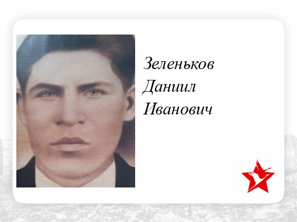 Погиб в бою, порявив геройство и мужество. Похоронен в Венгрии,. село Киресжурь( возможно неточное название). в районе озера Балатон. Даниил Иванович - родной брат моей бабушки Кашубы(в девичестве Зеленьковой) Екатерины Ивановны. Последний год служили вместе с отцом (моим прадедушкой) Зеленьковым Иваном Васильевичем. В семье сохранилась фотография похорон моего двоюродного деда.